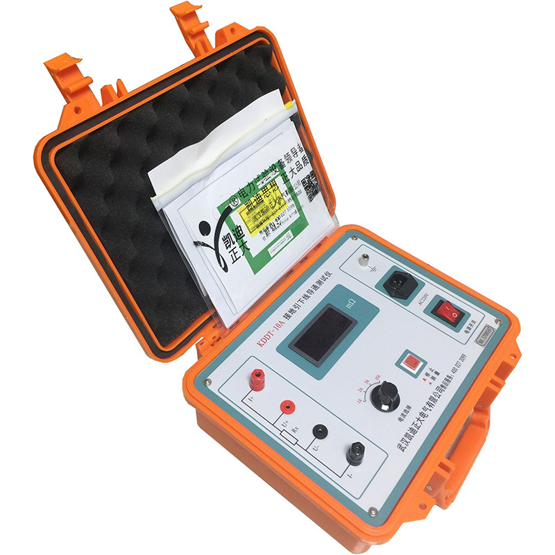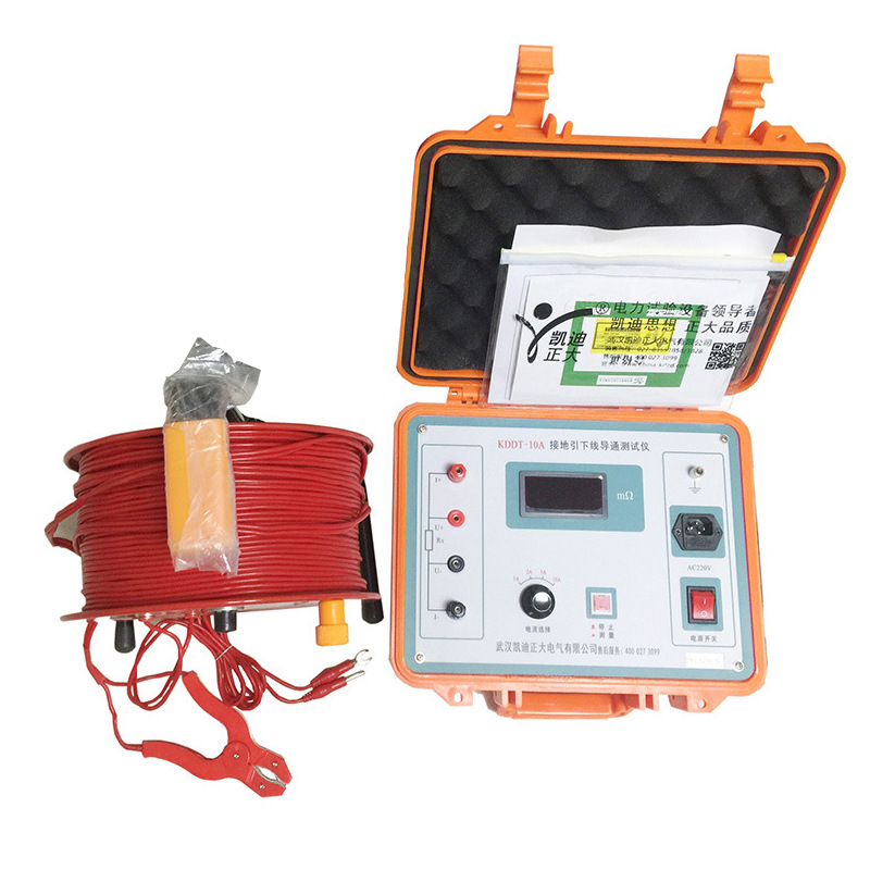 KDDT-10A 接地引下線導通測試儀適用于適用于電力設備接地引下線與接地網(或相鄰設備)之間導通電阻值的測量,同樣適用于低阻值電阻的測量。