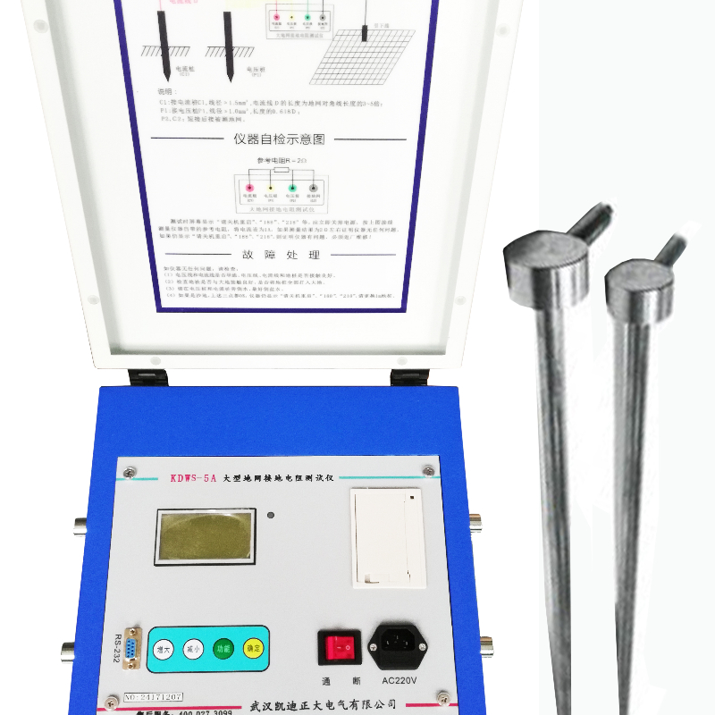 KDWS-10A型大型地網(wǎng)接地電阻測(cè)試儀,可測(cè)變電站地網(wǎng)(4Ω)、水火電廠、微波站(10Ω)、避雷針(10Ω)多用機(jī)型,采用了新型變頻交流電源,并采用了微機(jī)處理控制和信號(hào)處理等措施,很好的解決了測(cè)試過(guò)程中的抗干擾問(wèn)題,簡(jiǎn)化了試驗(yàn)操作過(guò)程,提高了測(cè)試結(jié)果的精度和準(zhǔn)確性,大大降低了試驗(yàn)人員的勞動(dòng)強(qiáng)度和試驗(yàn)成本。