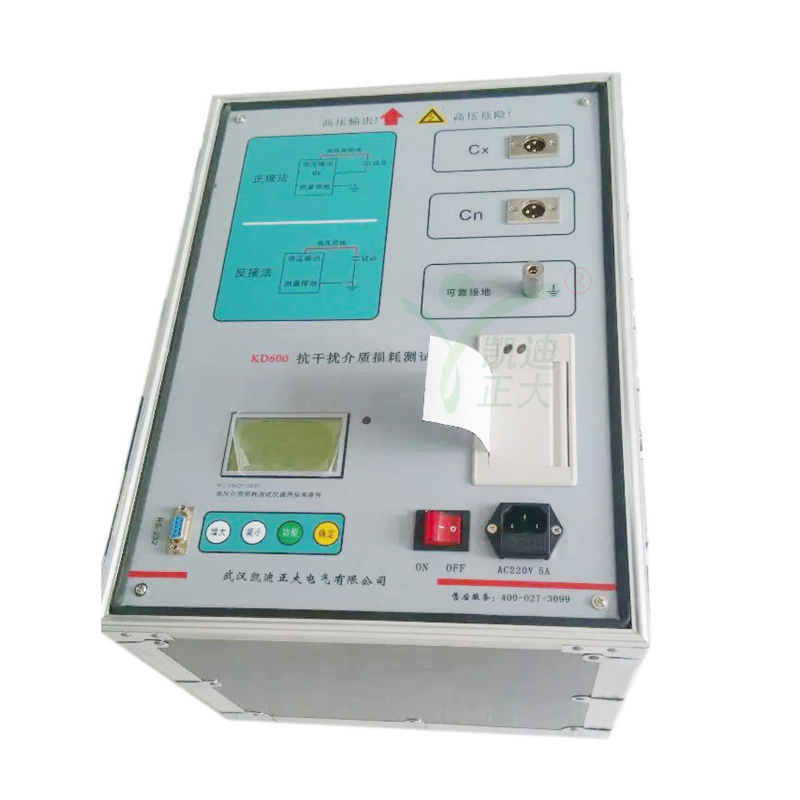 KD600B介質損耗測試儀可用正、反接線方法測量不接地或直接地的高壓電器設備,同時可以測量電容式電壓互感器的tgδ及主電容C1、C2電容量。