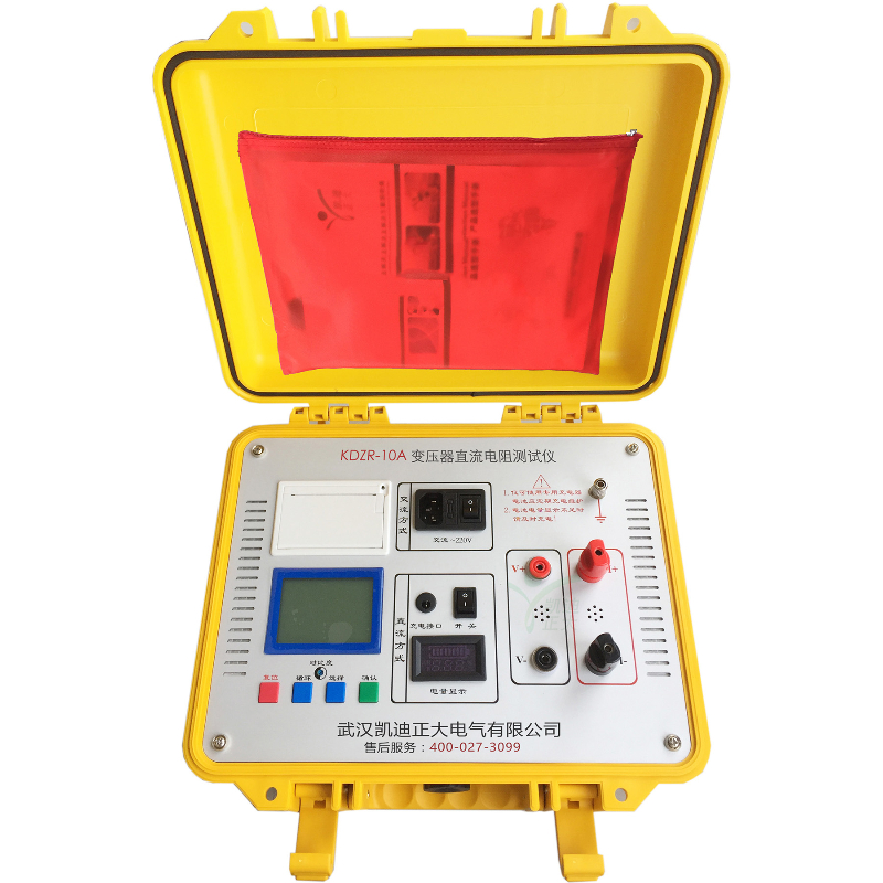 KDZR-10A變壓器直流電阻測(cè)試儀是變壓器、互感器、電抗器、電磁操作機(jī)構(gòu)等感性線圈制造中半成品、成品出廠試驗(yàn)、安裝、交接試驗(yàn)及電力部門(mén)預(yù)防性試驗(yàn)的必測(cè)項(xiàng)目,能有效發(fā)現(xiàn)感性線圈的選材、焊接、連接部位松動(dòng)、缺股、斷線等制造缺陷和運(yùn)行后存在的隱患。為了滿足感性線圈直流電阻快速測(cè)量的需要,武漢凱迪正大電氣有限公司利用自身技術(shù)優(yōu)勢(shì)研制了KDZR-10A變壓器直流電阻測(cè)試儀采用全新電源技術(shù),具有體積小、重量輕、輸出電流大、量程寬、數(shù)字顯示、內(nèi)部鋰電池供電等特點(diǎn)。整機(jī)由單片機(jī)控制,自動(dòng)完成自檢、數(shù)據(jù)處理、顯示等功能,具有自動(dòng)放電和放電指示功能。儀器測(cè)試精度高,操作簡(jiǎn)便,可實(shí)現(xiàn)直阻的快速測(cè)量。
