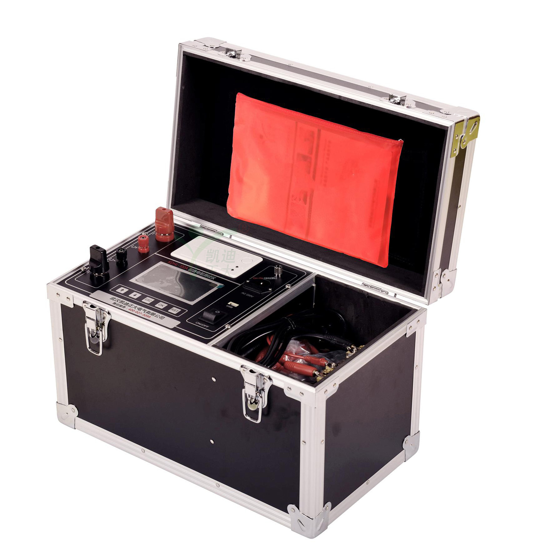 KDHL-100A回路電阻測試儀也稱斷路器導(dǎo)電回路。是檢測導(dǎo)電性能的好壞,對保障開關(guān)的安全運行具有重要作用。導(dǎo)電性能的優(yōu)劣可以通過導(dǎo)電回路電阻的大小反映出來。因此IEC標(biāo)準(zhǔn)及制造廠都規(guī)定應(yīng)測量回路電阻,并且對各種形式的開關(guān)的回路電阻有明確規(guī)定指標(biāo)。一般過去使用雙臂電橋。由于電橋的電壓,電流都比較小,當(dāng)開關(guān)的動靜觸頭之間有雜質(zhì)或表面有氧化等,測試的數(shù)據(jù)分散性就較大。同時電橋的抗干擾性差,因此國家標(biāo)準(zhǔn)規(guī)定使用200A以上直流電流進行測試。回路電阻測試儀是我公司為適應(yīng)GB50150-2006和DL/T 845.4-2004規(guī)程要求開發(fā)的測試儀器,廣泛適用于各種電器開關(guān)的接觸電阻、回路電阻及電纜電線、焊縫接觸電阻的測量。