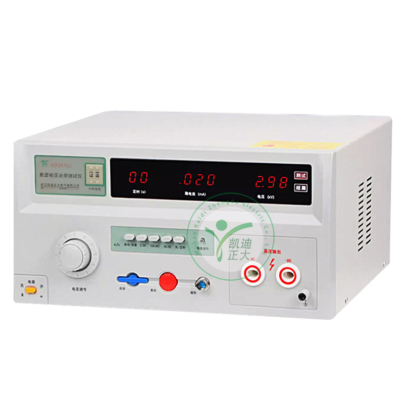 KD2670J數顯電壓擊穿測試儀是測量耐壓強度的儀器,它可以直觀、準確、快速、可靠地測試各種被測對象的擊穿電壓、漏電流等電氣安全性能指標,并可以作為高壓源用來測試元器件和整機性能。耐壓測試儀產品系列是按照IEC、CSA、UL、JIS等國際國內的安全標準要求設計的,耐壓輸出1kV~50kV提供定制,漏電流0~200mA。