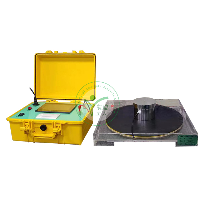 本裝置由三部分組成:試驗(yàn)主機(jī),加壓電極,接收電極。試驗(yàn)主機(jī)內(nèi)部集成正弦波逆變電源和測量模塊,使用外部220V交流電源即可產(chǎn)生穩(wěn)定的單相交流600V試驗(yàn)電源并自動測量、計(jì)算試驗(yàn)結(jié)果。