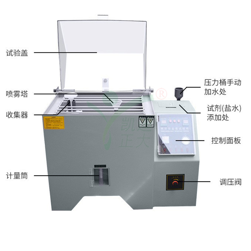 排氣管:排氣管直徑是48MM,試驗室的鹽霧由此孔排出,在做試驗時最好是接一根軟管把鹽霧引致室外,千萬不能堵塞或有積水之現象。