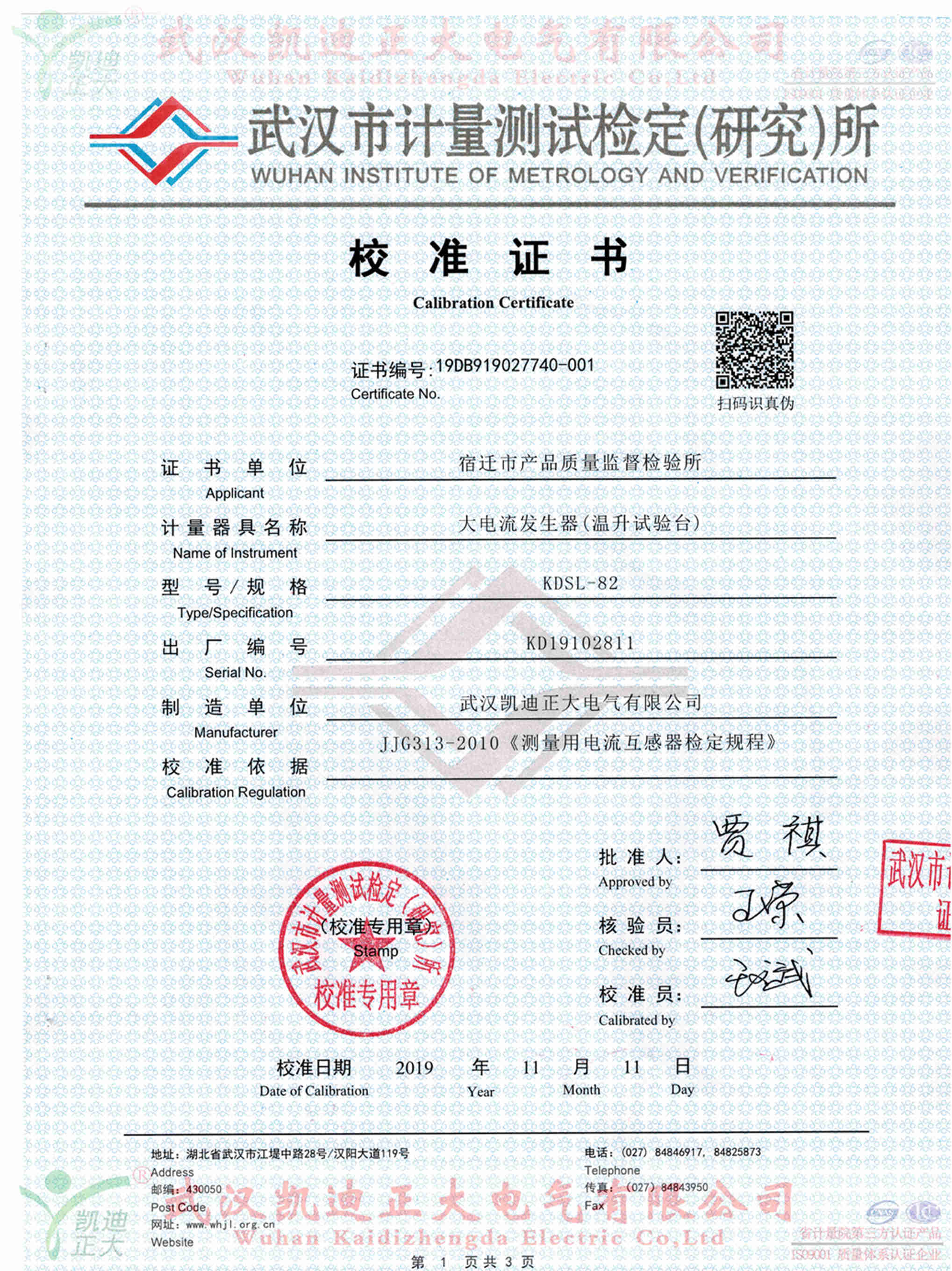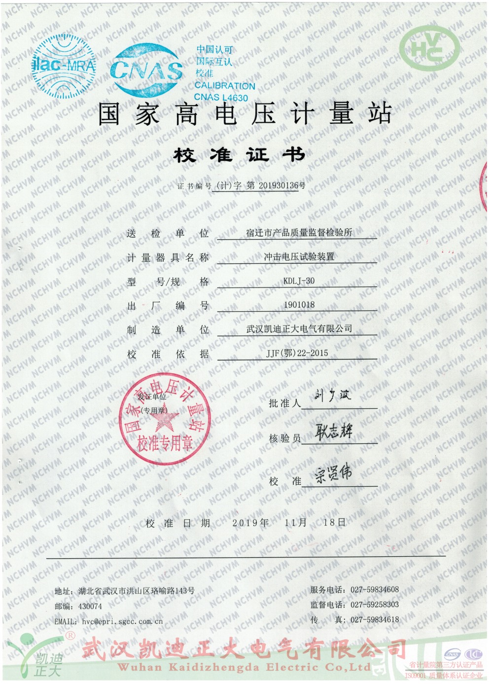 武漢市計(jì)量測(cè)試檢定(研究)所對(duì)宿遷市產(chǎn)品質(zhì)量監(jiān)督檢驗(yàn)所采購的產(chǎn)品作檢定效驗(yàn)報(bào)告。
