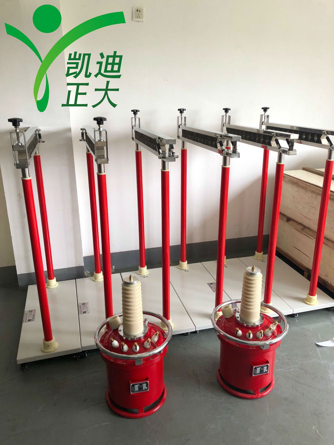 上圖為凱迪正大KDJS-G35絕緣桿測試支架和KDYDQ氣體試驗變壓器,準備打包發貨。
