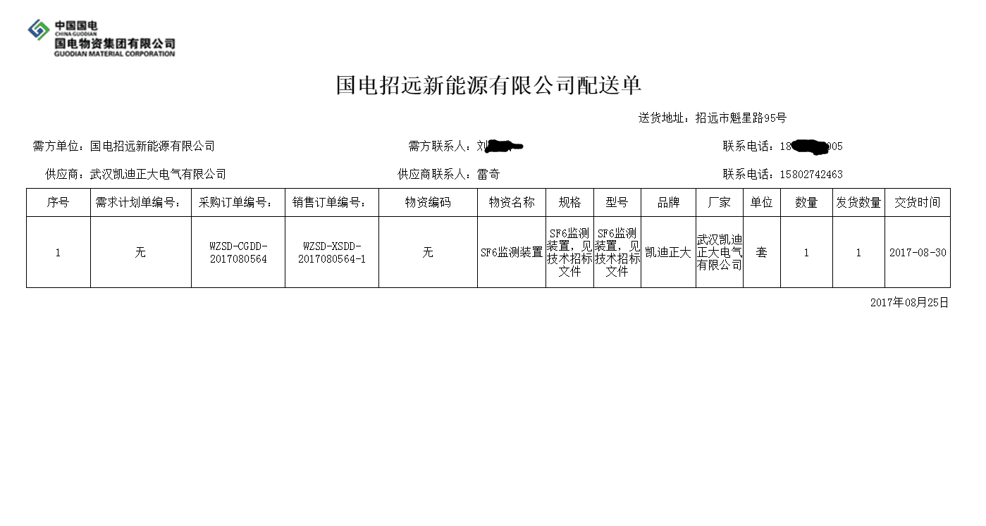 近期江城持續(xù)高溫,酷暑難耐。但絲毫沒有影響凱迪正大同仁的工作熱情,八月中旬,凱迪正大在國電招遠(yuǎn)新能源有限公司《35KV配電室加裝SF6監(jiān)測裝置項目》招標(biāo)采購中,憑借著良好的市場信譽(yù),可靠的產(chǎn)品質(zhì)量成功拿下此標(biāo)的。詢價單編號:WZSD-2017080285