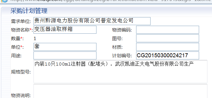中國華電黔源電力指定招標KDZD變壓器油取樣箱