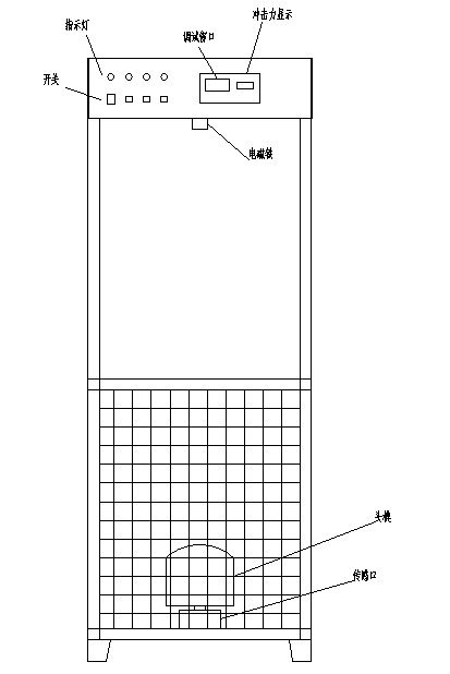 同安全帽的沖擊試驗相似,先將信號線插在重錐上(紅色線帶有香蕉插頭,插在重錐的接線孔上),將重錐吸附在電磁鐵上(讓重錐從1米的高度自由落體,砸在安全帽的頂部),若重錐的尖端有碰到頭模的金屬板,刺穿指示燈就會亮起,若沒有亮起說明安全帽沒被刺穿或刺穿不是很嚴重。試驗完成后觀察安全帽被破壞的程度,若有較明顯的損壞(有裂痕,刺穿的孔比較大)可認定安全帽不合格。
