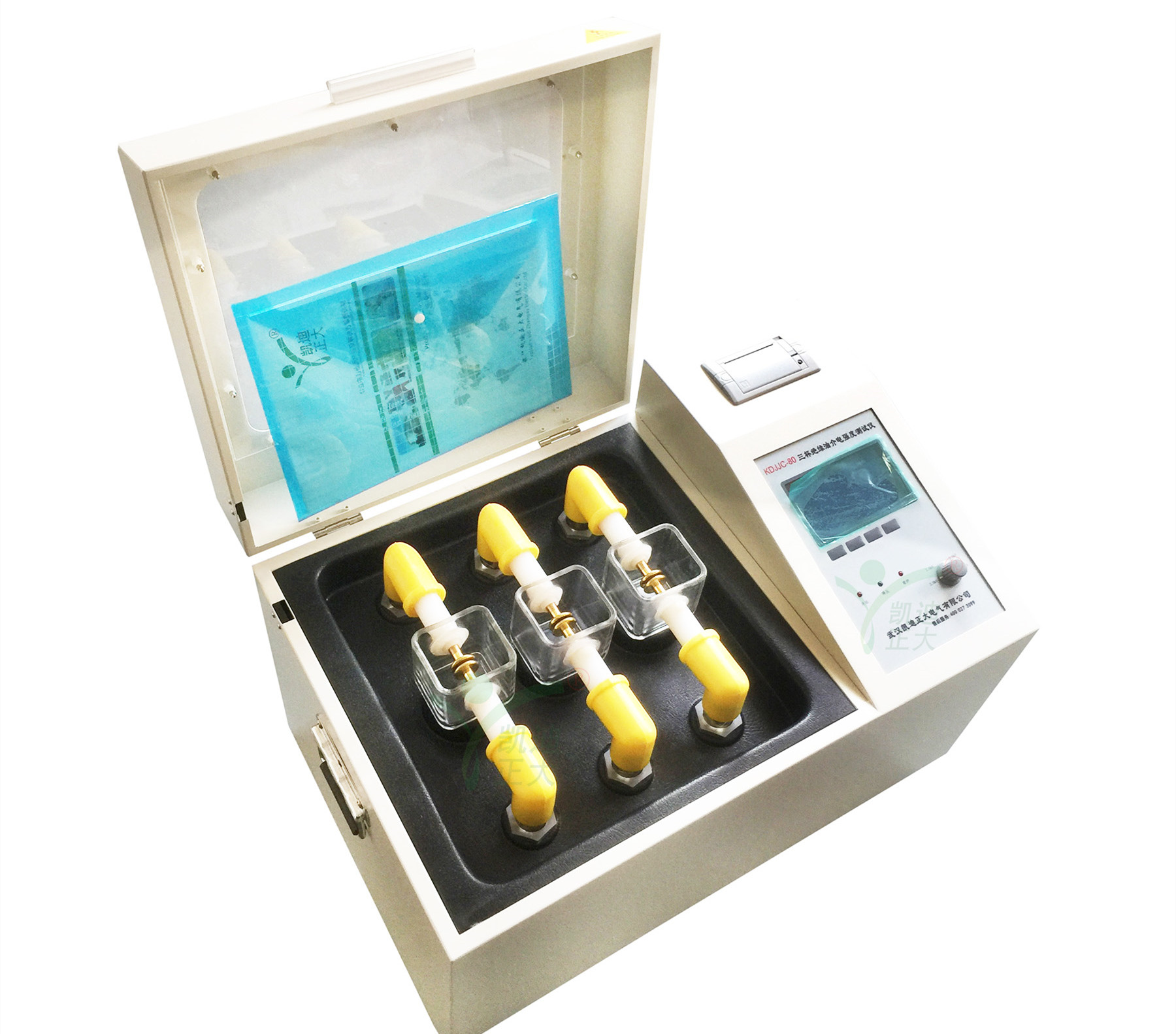 11、保護(hù)罩和油杯使用絕緣材料全絕緣保護(hù)無(wú)局部放電現(xiàn)象、無(wú)電訊聲,采用機(jī)械電路雙重保護(hù),油杯帶蓋,符合IEC156/1995-05中避免試驗(yàn)時(shí)測(cè)試油吸收潮氣的規(guī)定;確保試驗(yàn)人員的安全;