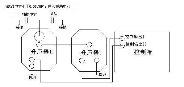 (2)I號升壓器和II號升壓器串聯使用(試驗電壓≤80KV)連線方法