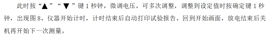 ★另外還有兩種非正常停機:過壓保護停機、過流保護停機。停機后出現相應的提示界面,放電結束后,再調整限制電壓值或限制電流值,再開始下次測量。