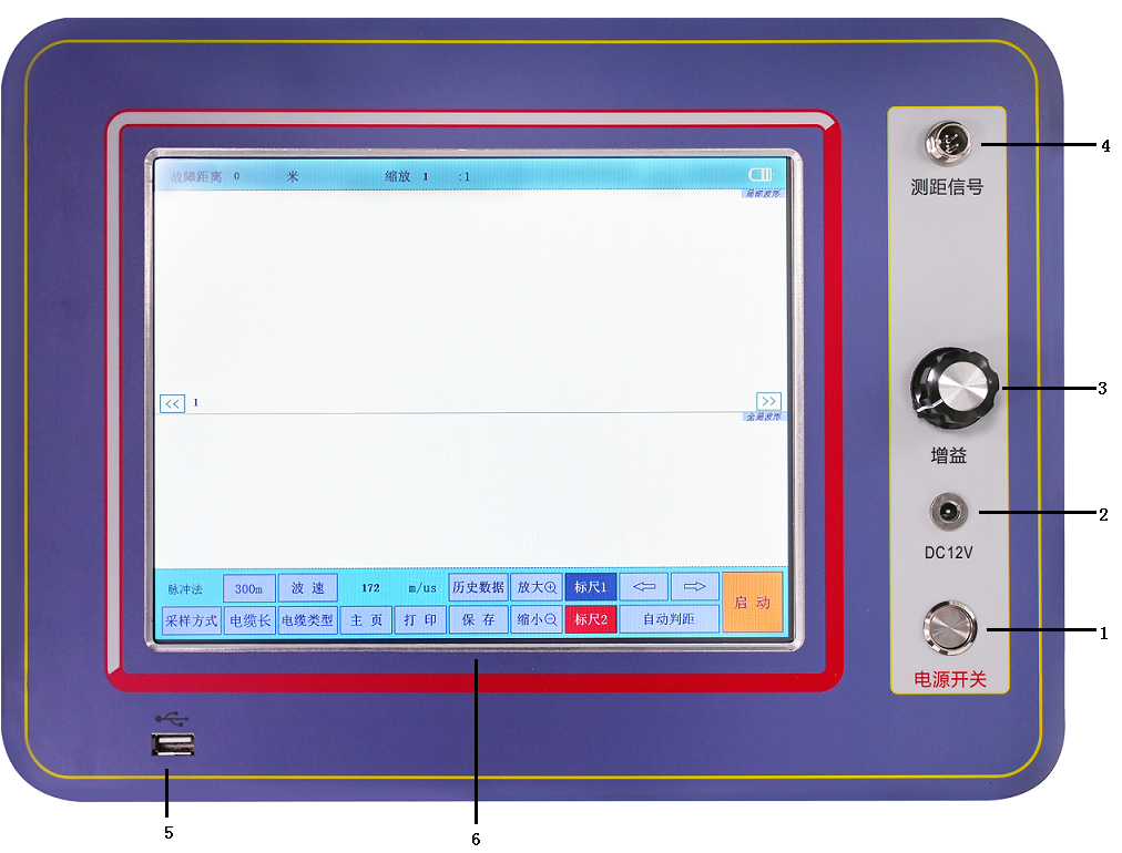 4、測距端口:測量電纜故障點距離時,從該端口發出信號。